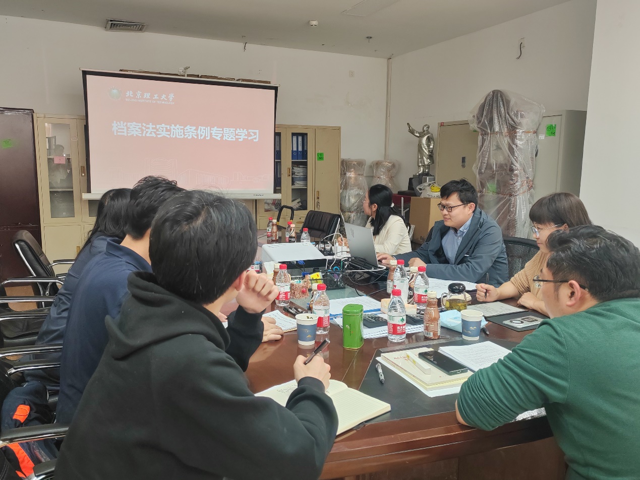 为切实做好《中华人民共和国档案法实施条例》(以下简称《档案法实施条例》)学习宣传和贯彻实施,做好学校2024年档案工作,按照工业和信息化部、国家档案局等上级单位的要求,4月12日下午,档案馆在良乡校区档案馆会议室组织档案法实施条例专题学习。